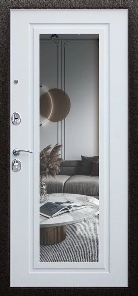 Надежная входная Дверь Комфорт с зеркалом премиум класса по цене 30 971 руб. Большая толщина стали защитит от проникновения в ваш дом, квартиру или коттедж. Используется очень качественная фурнитура: замки, цилиндры, ручки, защелки. Покрытие и отделка двери изготовлено под внимательным контролем производителя. Дверь имеет долгий срок службы и гарантию.